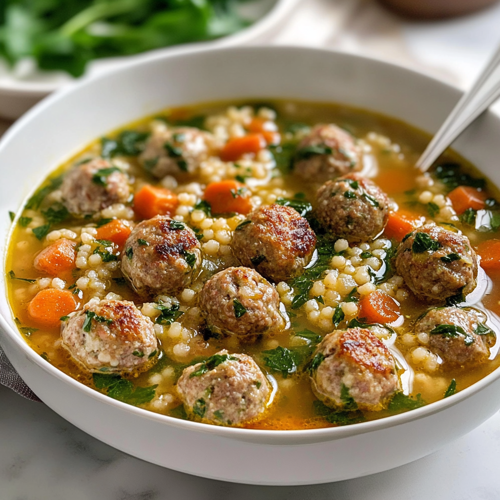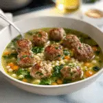 30-Minute Italian Wedding Soup with Mini Turkey Meatballs is a warm and inviting dish that brings the flavors of Italy to your table in just half an hour. This hearty soup features tender mini turkey meatballs simmered in a savory chicken broth, complemented by fresh spinach and vibrant carrots. Perfect for weeknight dinners or family gatherings, it offers both nutrition and comfort in every spoonful.