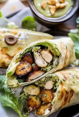 Delicious Pesto Chicken and Avocado Bacon Salad Wraps