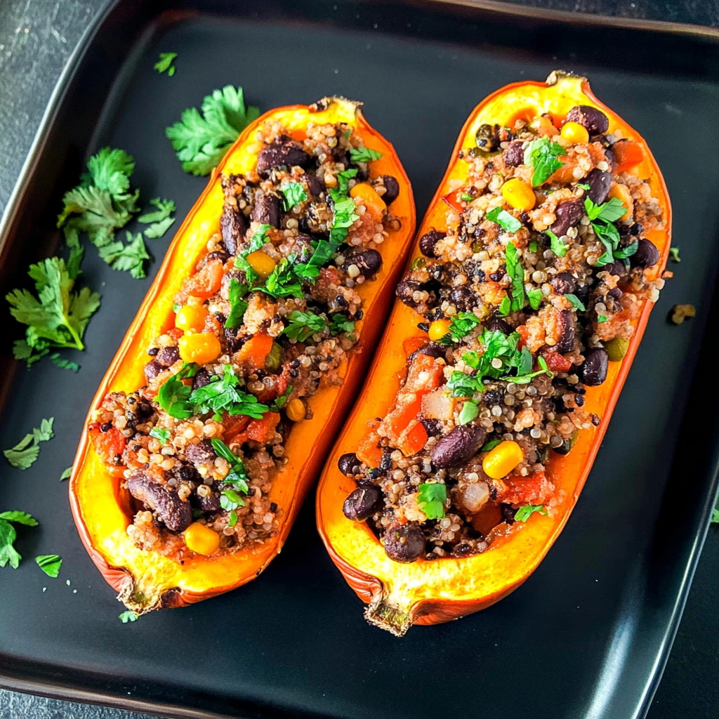 Cozy Stuffed Butternut Squash with Quinoa & Black Beans