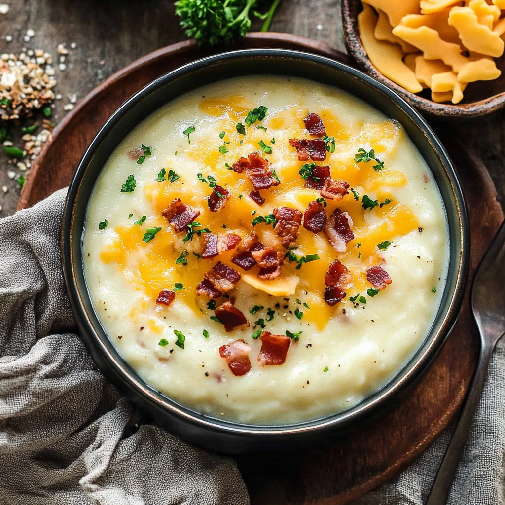 Creamy Baked Potato Soup Loaded with Bacon & Cheese Delight