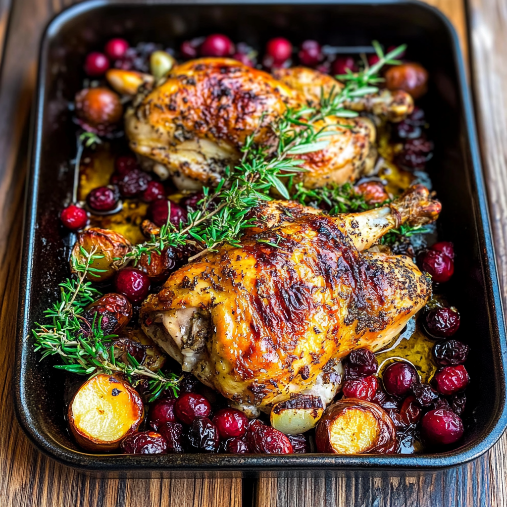 Irresistible Festive Sheet Pan Roasted Chicken + Cranberries