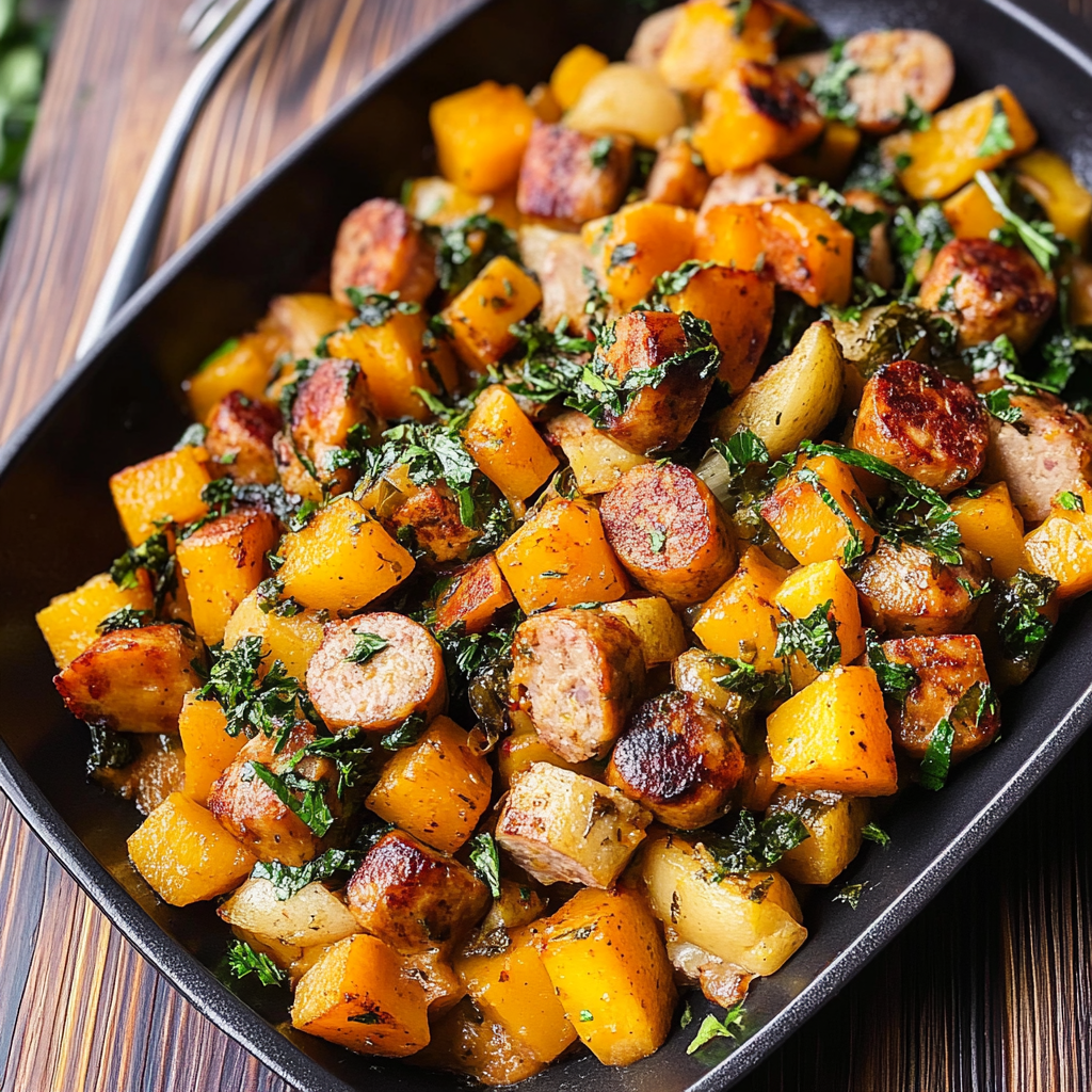 Delicious Roasted Squash and Sausage Skillet Dinner Recipe