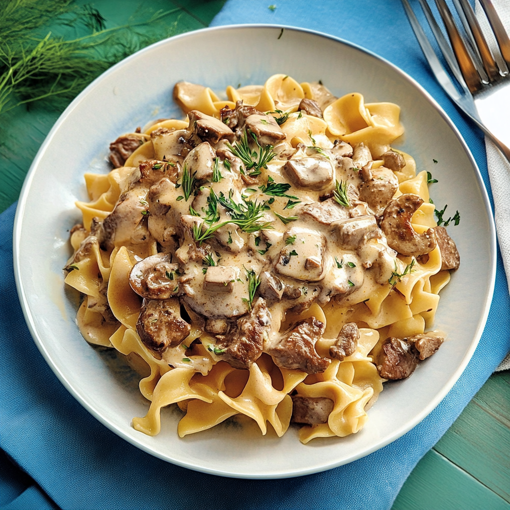 Heavenly Beef Stroganoff with Egg Noodles Recipe