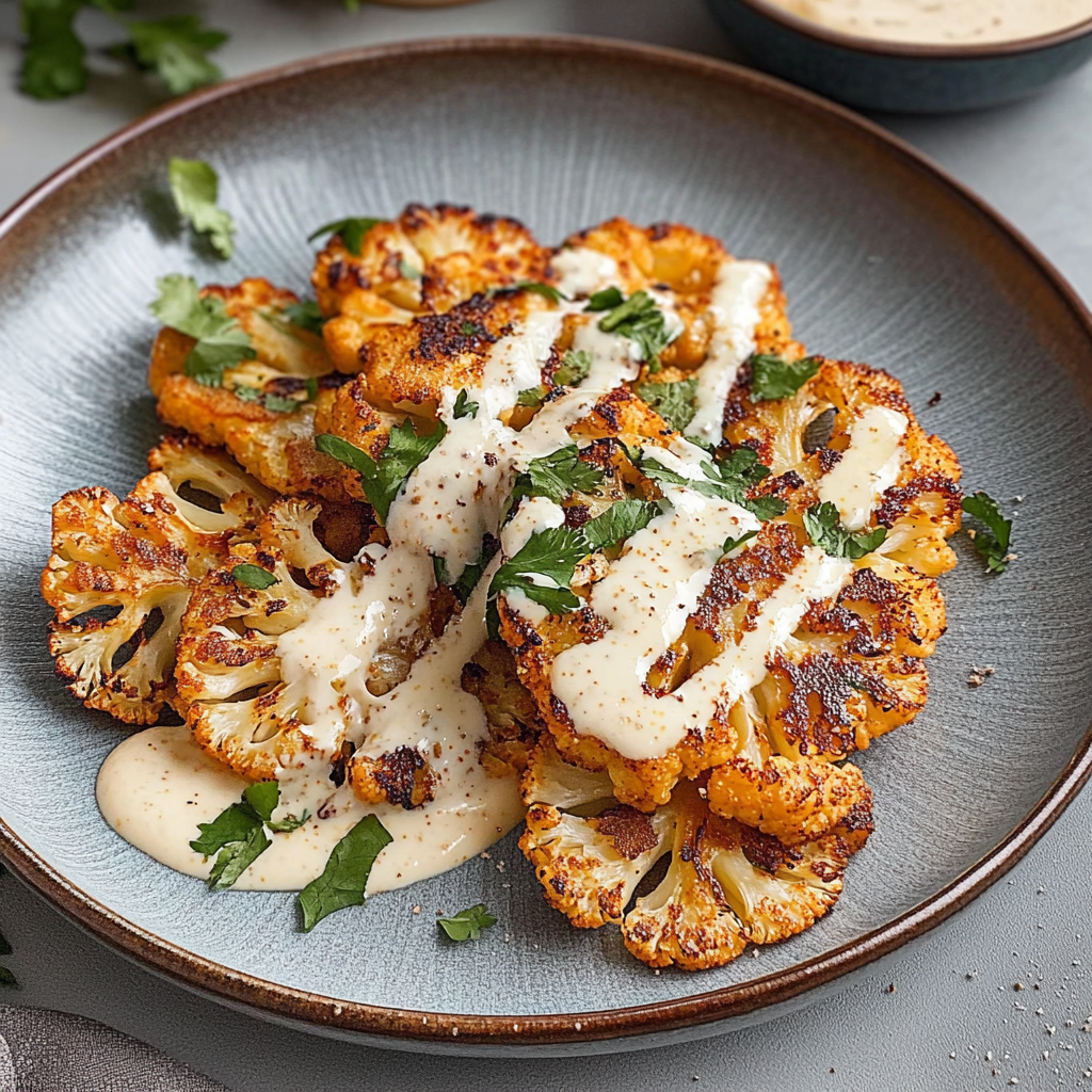 Crispy Sheet Pan Cauliflower Steaks with Tahini Glaze
