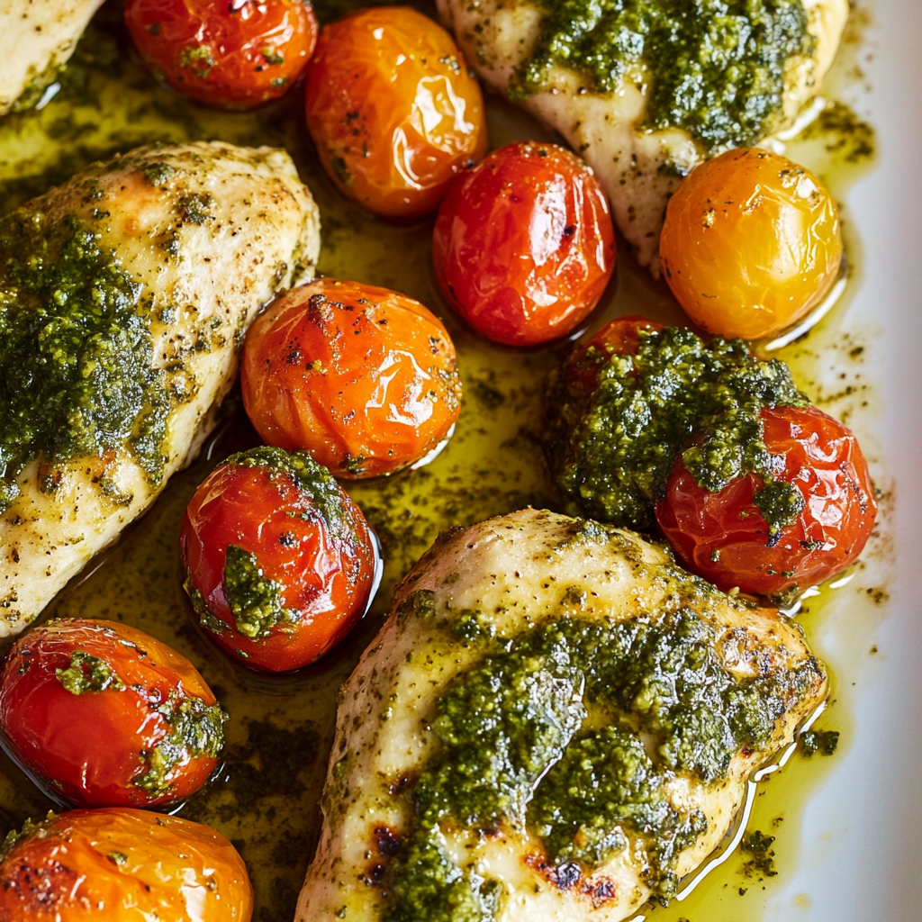 Irresistible Sheet Pan Pesto Chicken & Cherry Tomatoes