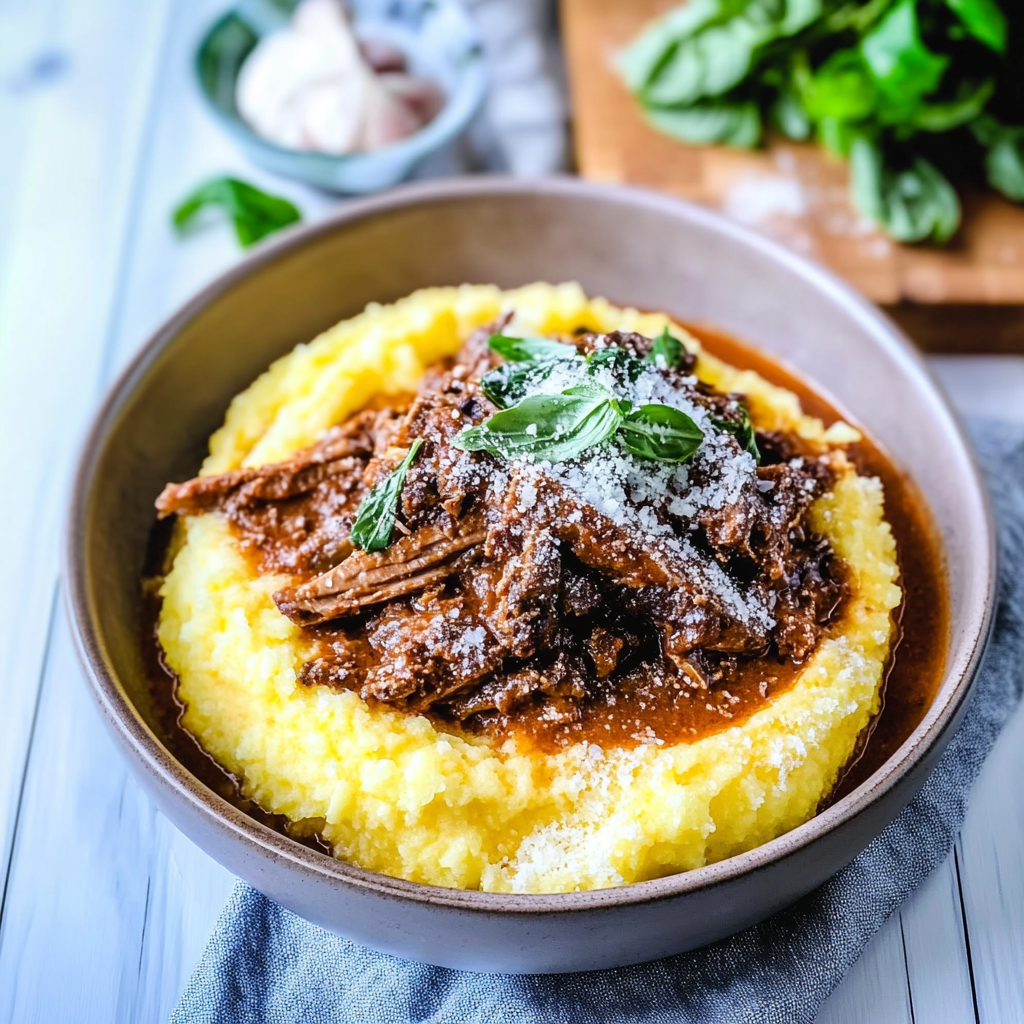 Savory Italian Braised Beef Ragu with Parmesan Polenta