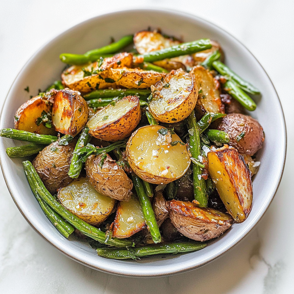 Irresistible Roasted Garlic Potatoes & Green Beans Recipe