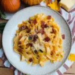 Creamy Pumpkin Carbonara Pasta with Crispy Pancetta