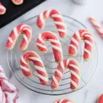 Keep your candy cane cookies in an airtight container at room temperature for up to a week. If you want to enjoy them warm, pop them in the microwave for about 10 seconds for a freshly baked taste.
