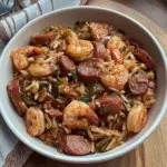 Yes, you can prepare Shrimp & Andouille Sausage Jambalaya in advance! Once cooked, let it cool completely before storing it in an airtight container in the refrigerator. It will keep well for about three days. When you’re ready to serve it again, simply reheat on the stovetop or in the microwave until heated through. Making this dish ahead of time can save you effort during a busy week while allowing the flavors to meld even further.