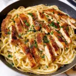 Creamy Garlic Butter Chicken & Linguine in Alfredo Sauce combines tender chicken with rich flavors and creamy sauce over perfectly cooked pasta. This dish is quick to prepare, making it ideal for weeknight dinners or special occasions alike. crispy chicken Caesar sandwich With just a few simple ingredients and steps, anyone can whip up this delightful meal at home. Enjoying this comforting dish will surely impress family and friends while satisfying your taste buds!