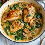 Creamy Tuscan chicken with spinach and mushrooms is a comforting dish that brings the flavors of Italy to your dinner table. Tender chicken breasts simmer in a rich, garlicky cream sauce that’s infused with earthy mushrooms and vibrant spinach. This easy-to-make recipe is perfect for weeknight dinners or special occasions, delivering a delightful culinary experience that pairs beautifully with pasta or rice.