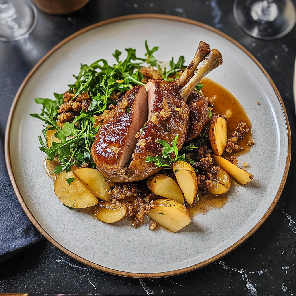 In summary, Duck Confit with Apple Sauce is a richly flavored dish that highlights tender duck meat complemented by a sweet apple sauce. Making this dish at home involves curing and cooking duck legs slowly in fat, followed by preparing a simple apple sauce. With versatile side options and an elegant presentation, this dish provides an exceptional dining experience perfect for gatherings or special occasions. Enjoy this culinary delight that brings together classic French techniques and comforting flavors!