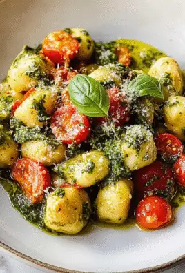 Start by boiling the gnocchi while you prepare the pesto. Sauté the cherry tomatoes in a pan until they burst with flavor. Combine everything at the end for an explosion of taste that will have your taste buds dancing.