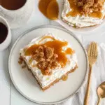 Now comes the moment we’ve all been waiting for! Drizzle that glorious caramel sauce over the top, letting it seep into those holes for maximum deliciousness.