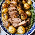 Savor the comforting flavors of herb roasted pork tenderloin accompanied by crispy baby potatoes. This easy-to-make yet impressive dish features juicy, well-seasoned pork infused with aromatic rosemary and thyme, creating a delightful centerpiece for family dinners or entertaining guests. Experience a meal that brings warmth and deliciousness to your table.