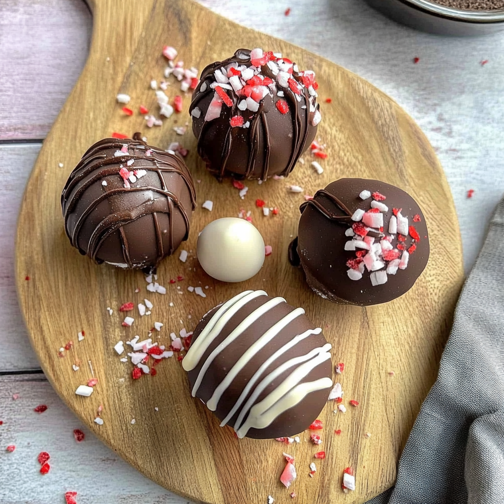 Drizzle melted white chocolate over your finished bombs and sprinkle crushed candy canes for that festive flair! Allow them to set completely before enjoying.