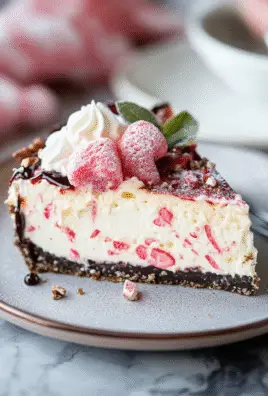 - Drizzle melted white chocolate on top and sprinkle crushed candy canes for garnish. Allow to set before serving.