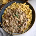 Transfer your luscious quick beef stroganoff with mushrooms onto plates or over your favorite base—like egg noodles or rice—for that extra comfort factor! Garnish with fresh parsley if you’re feeling fancy.