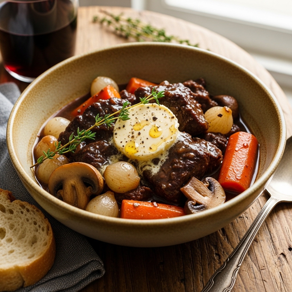 What is Slow Cooker Beef Bourguignon with Bone Marrow Butter?