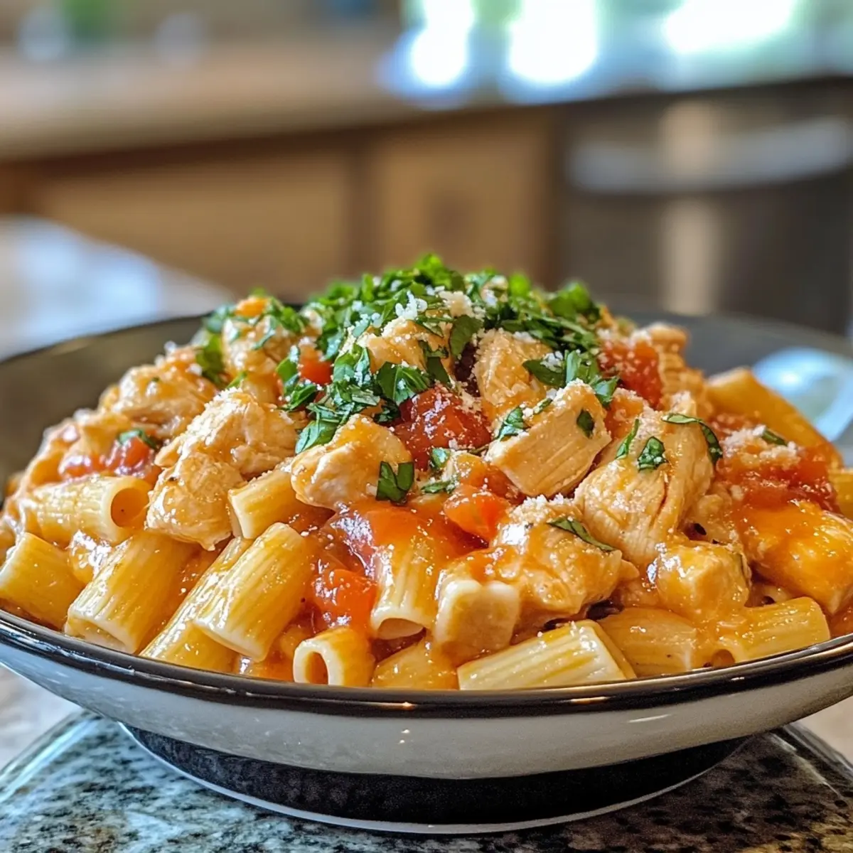 - Combine Ingredients: Return the cooked chicken to the skillet, cooking until it’s tender, about 5 more minutes. Meanwhile, cook the penne pasta al dente according to package instructions; then mix it with the sauce.
