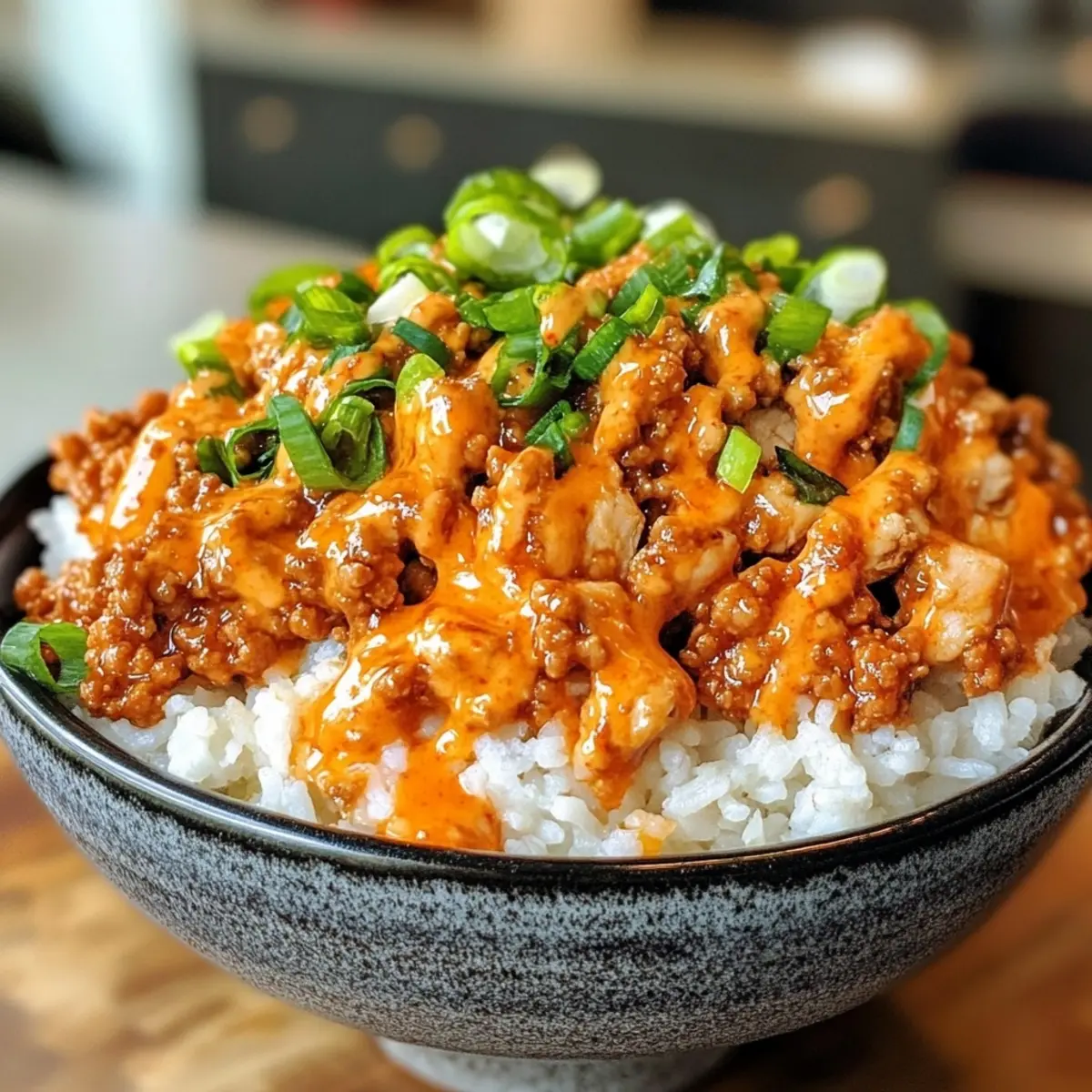 - Serve: Scoop fluffy white rice into bowls, top generously with the spicy chicken mixture, and garnish with crunchy green onions and sesame seeds. Enjoy piping hot!
