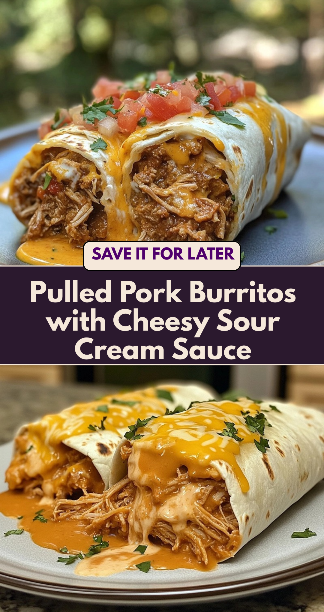 Indulgent Pulled Pork Burritos with Cheesy Sour Cream Sauce
