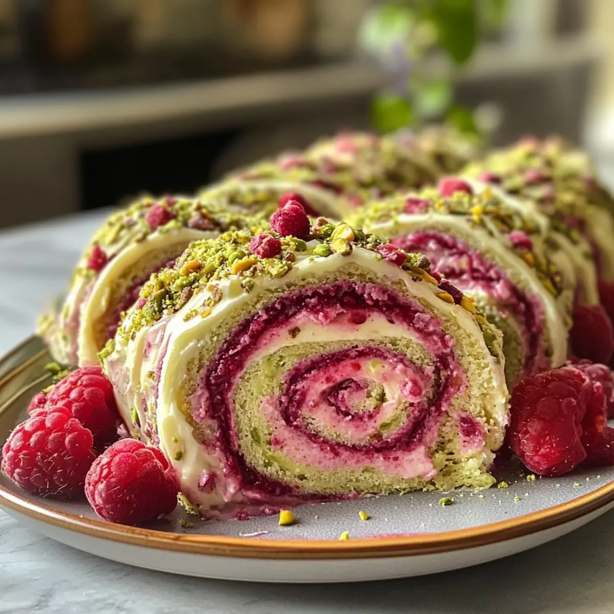 Elegance on a Plate: This Pistachio Raspberry Swiss Roll not only tastes divine but also looks stunning, making it a show-stopping dessert for any gathering.