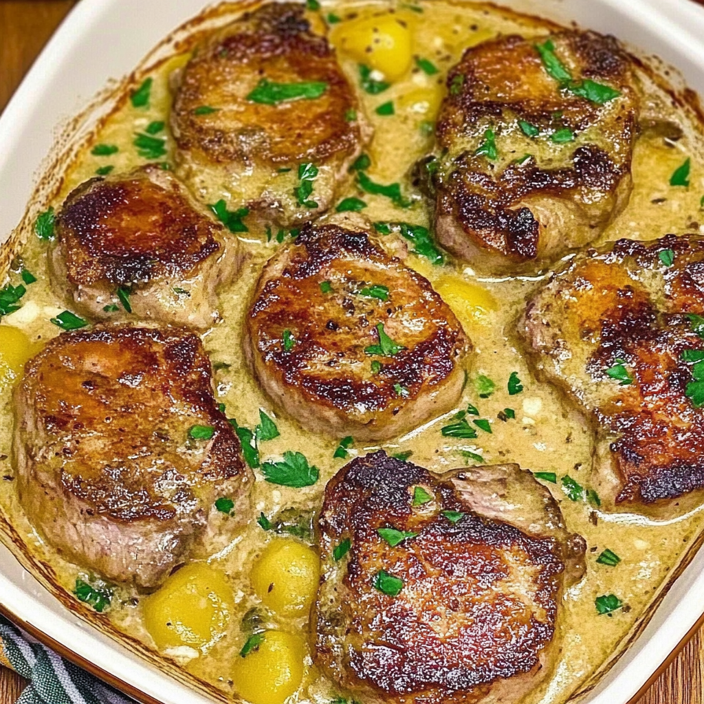 Pork Chops with Scalloped Potatoes is a comforting dish that combines juicy, seared pork chops with creamy, cheesy scalloped potatoes. This classic recipe evokes nostalgia and brings families together around the dinner table. Ideal for gatherings or cozy weeknight meals, it’s an effortless way to impress your guests while delighting their taste buds with a harmonious blend of savory and creamy flavors.